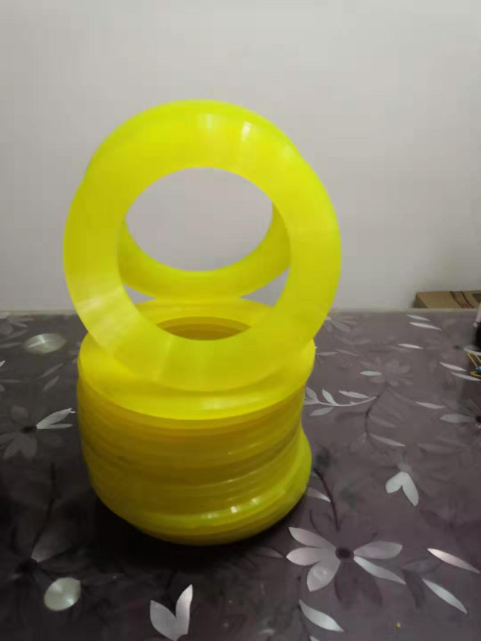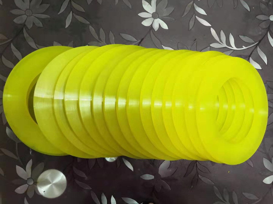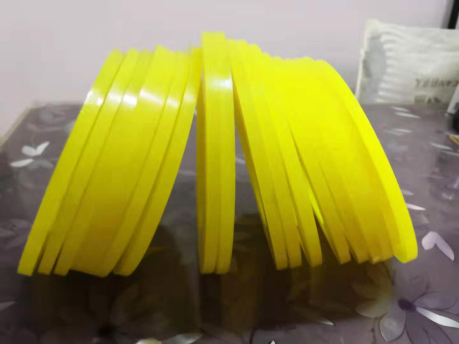 | 黃色聚氨酯縱剪分條機(jī)退料膠圈產(chǎn)品展示! |