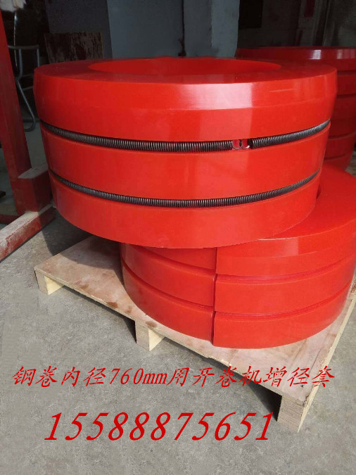 佛山縱剪開平機廠家配套聚氨酯漲芯膠套是一種適用于鋼卷內(nèi)徑610mm、730mm、760mm用的開卷機增徑膠套,寬度可根據(jù)客戶需要定制,產(chǎn)品規(guī)格齊全!所采用的聚氨酯材質(zhì),使增徑套具有較高的機械強度和氧化穩(wěn)定性,耐磨性佳,回彈性好!